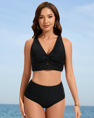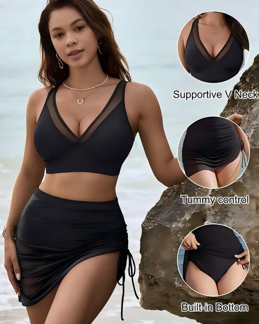 Mesh High Waisted Tummy Control Sarong Wraps Bikini Set